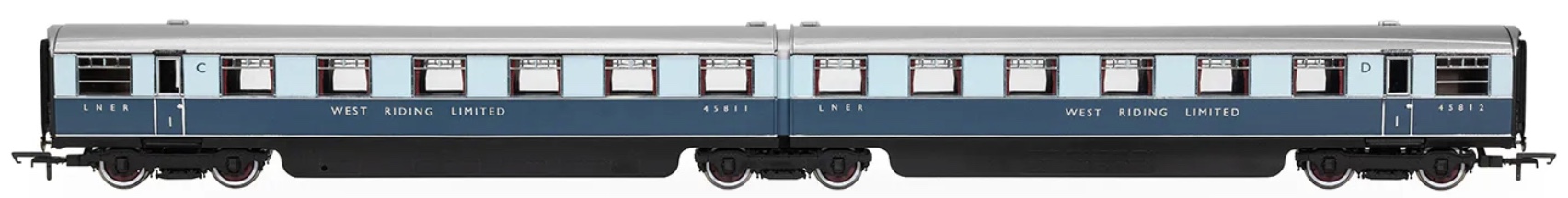 R40478 Hornby OO Gauge LNER West Riding Limited Double Open First Articulated Coach pack £134.99 Pre-order yours now.