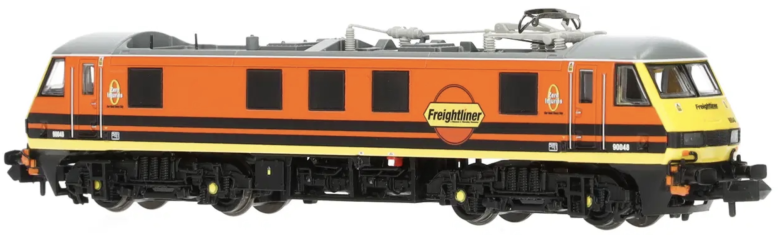 90048 is shown in its Freightliner guise, with vibrant orange and black Genesee & Wyoming livery, making it a standout on any N Gauge layout.
