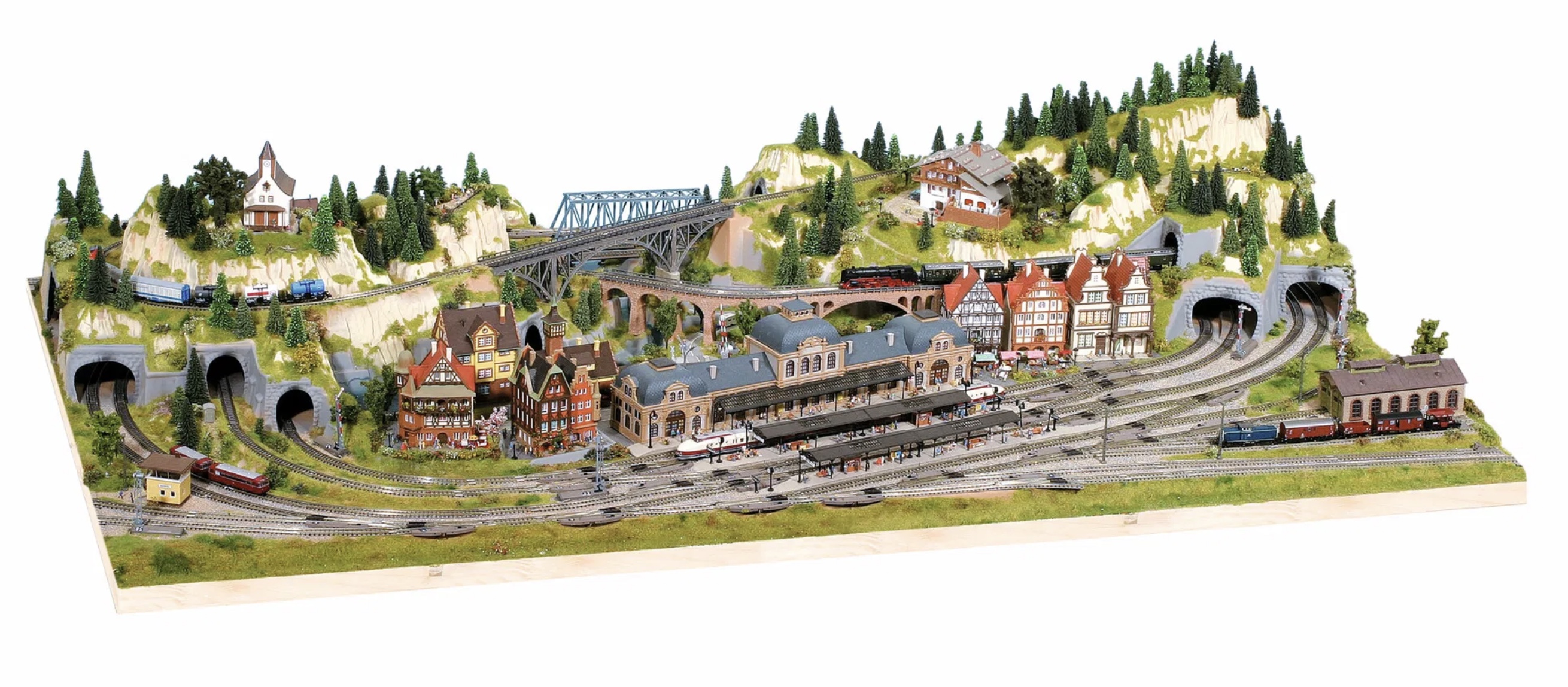 'Baden-Baden' is a particularly attractive large model with a lot of rail operation and thus meets the demands of technically adept railway modellers. Designed with four circuits in mind, its 175 x 100 cm footprint (approx. 31 cm high) has great use of space. Get yours, here.